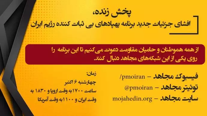 این کنفرانس مطبوعاتی بهصورت زنده از سیمای آزادی و سایت مجاهد و شبکههای اجتماعی آن بهصورت زنده پخش خواهد شد.