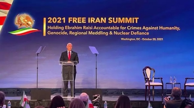 سخنرانی مایک پنس معاون رئیس جمهور آمریکا تا ژانویه ۲۰۲۱در کنفرانس ایران آزاد در واشینگتن